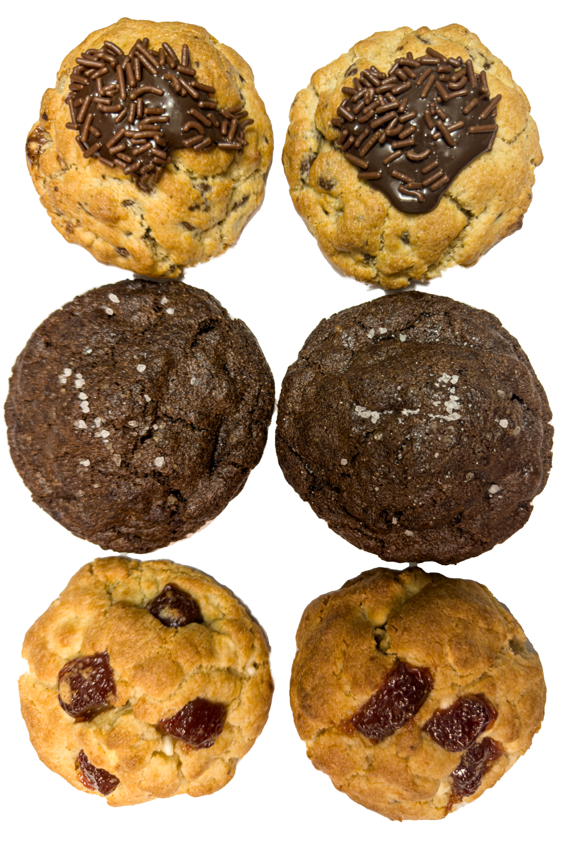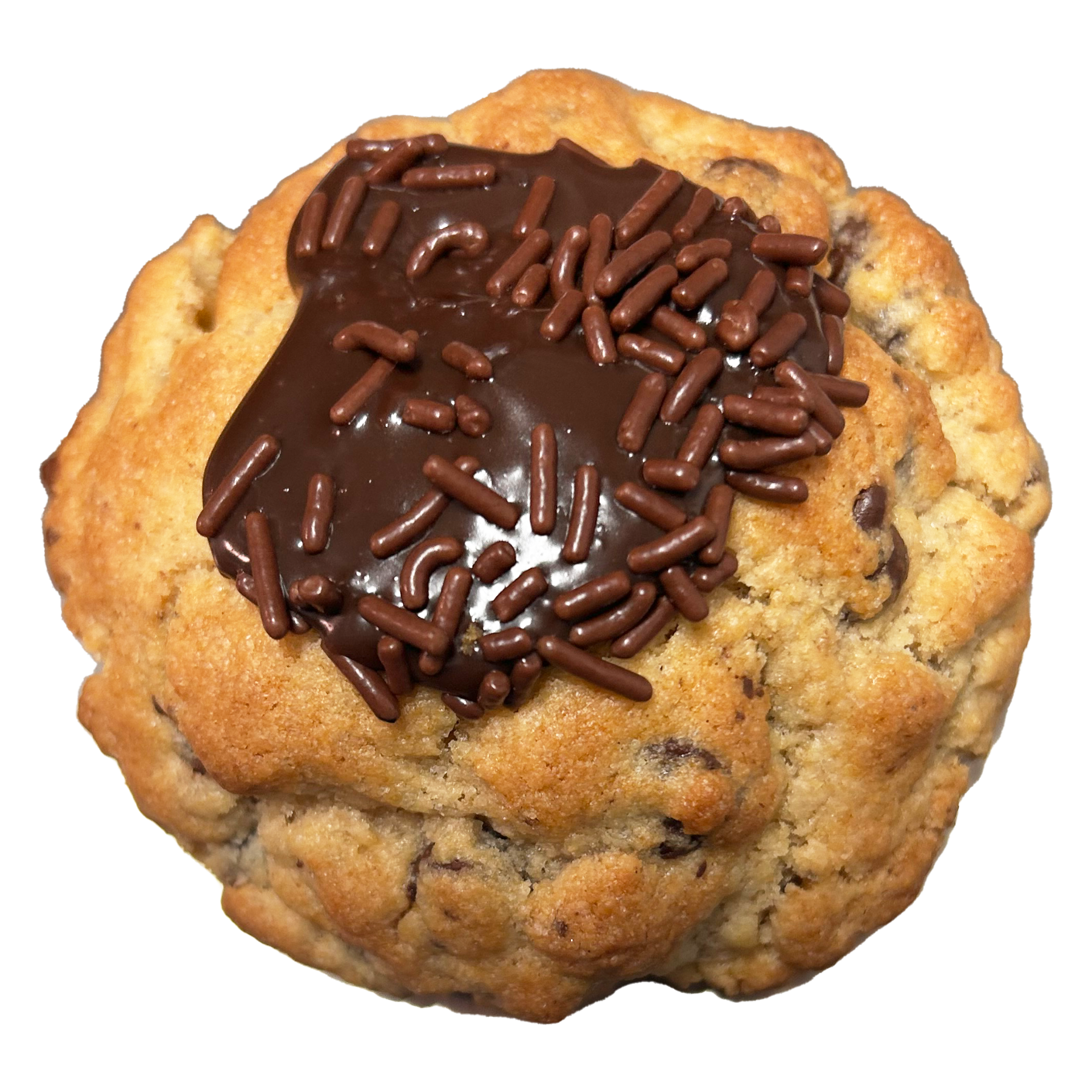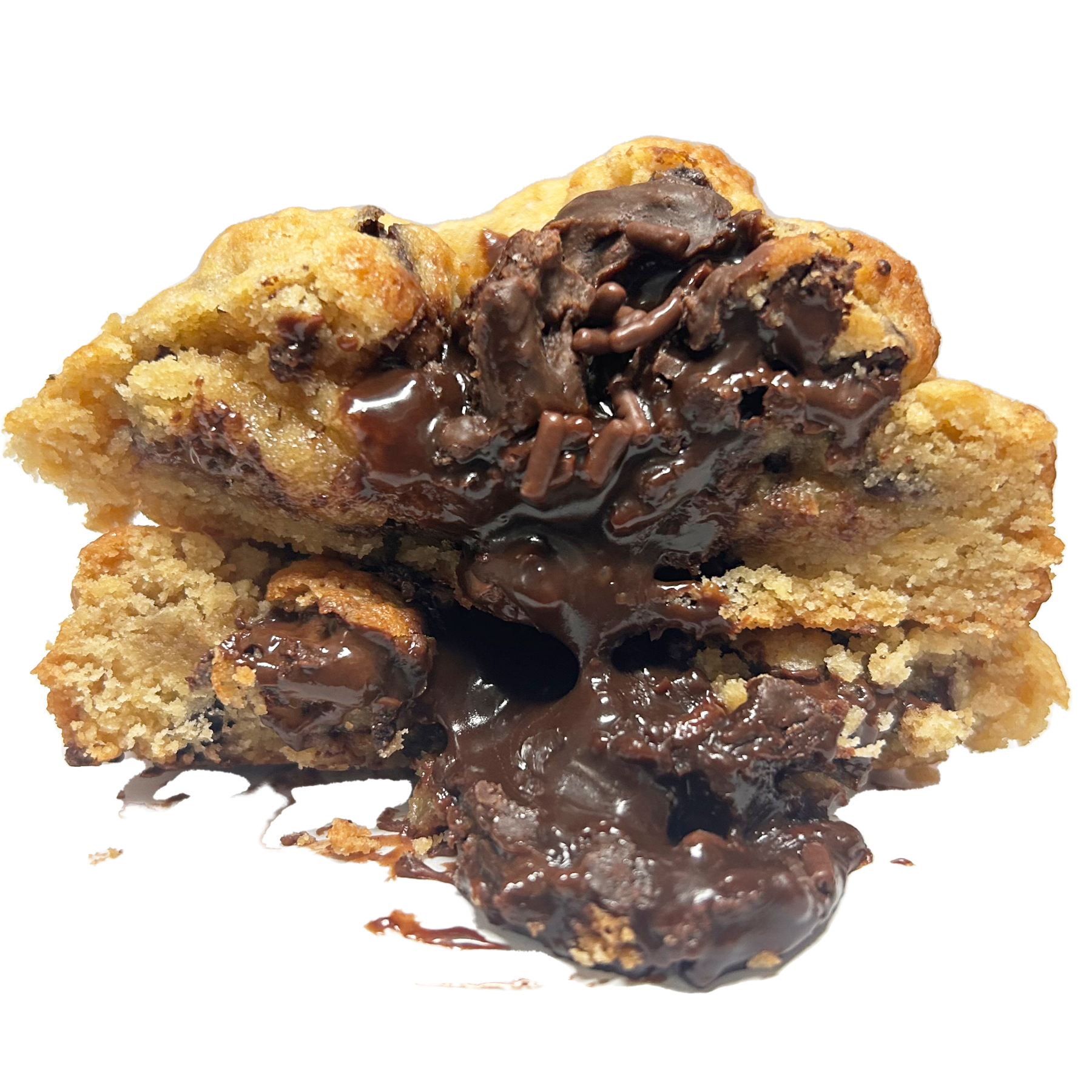 - 2 Bruno cookies, our classic chocolate chip cookie with brigadeiro (Brazilian fudge)